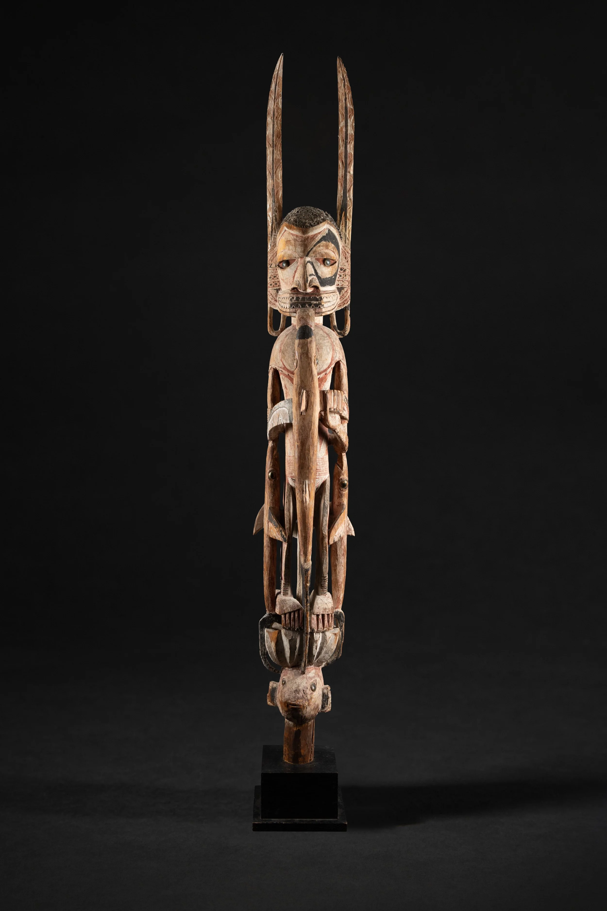 Carved wood, pigments and shells