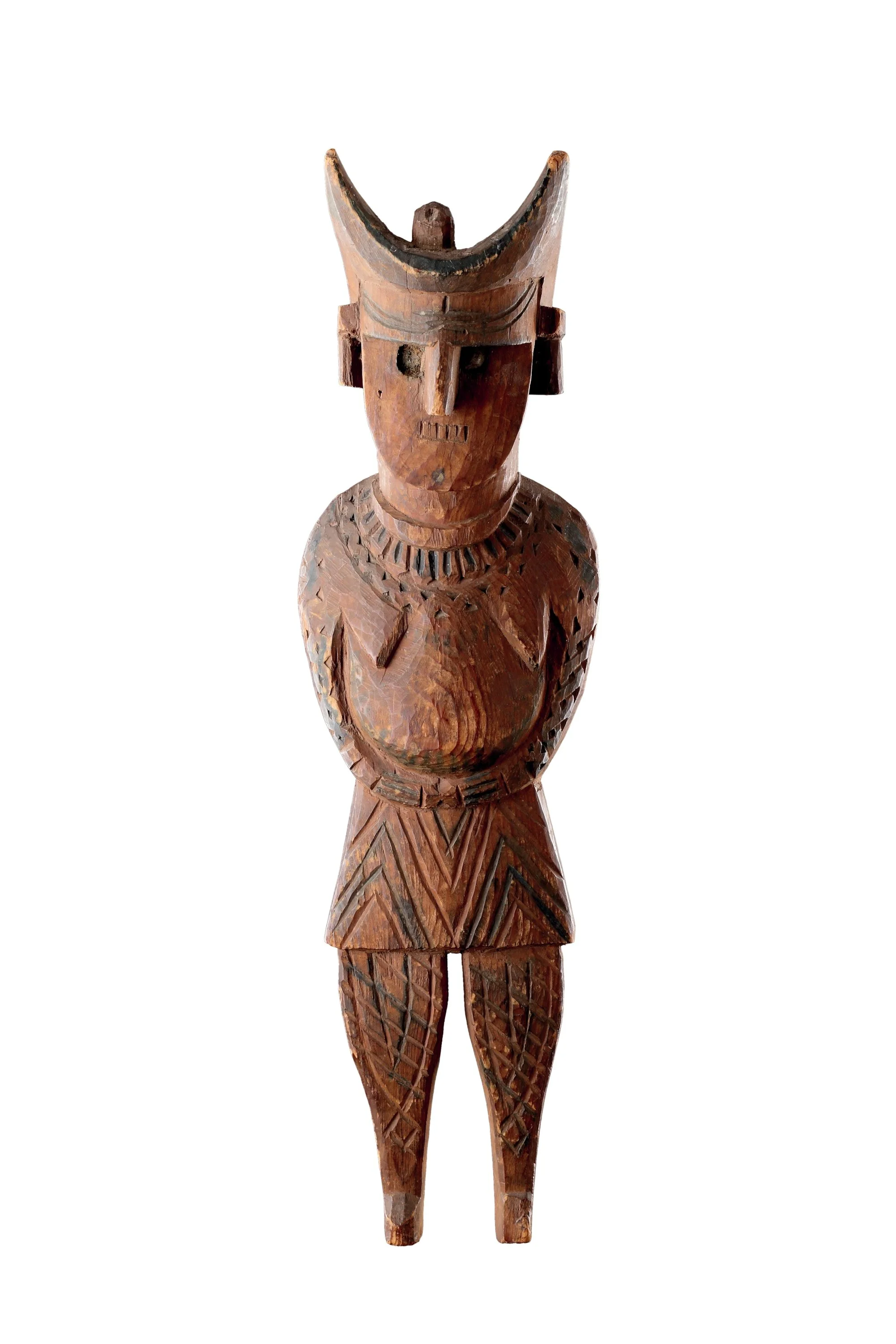 A rare pair of carved funerary figures depicting a male and rarely seen female figure